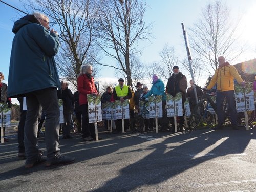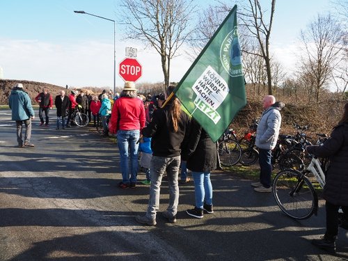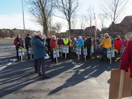 Unter der Regie vom grünen Mitglied Andreas Sültrup, der grünen Ortsverbandsvorsitzenden Liesel Steinkamp, Norbert Hoppman und Heinz Vahrenkamp versammelten sich ca. 60 Personen am 04.02.zu einer Demonstration an der General-Bishop-Straße mit dem Ziel 30-Allee-Bäume entlang dieses Straßenzuges zu retten. Diese 30 Bäume sollen nach einem Ratsbeschluss plangemäß einer Verbreiterung und Sanierung des Radweges entlang der General-Bishop-Straße gefällt werden. „Mit Sicht auf den Klimawandel gilt es primär die Bäume zu erhalten und nicht abzuholzen. Was für eine unsinnige Maßnahme“, sagt die grüne Vorsitzende Liesel Steinkamp. „Ein Radfahrstreifen auf der gegenüberliegenden Fahrbahn würde die Verkehrssituation entsprechend des Verkehrsaufkommens für Fußgänger und Radfahrer ausreichend entzerren. Diese Maßnahme wäre bedeutend kostengünstiger“.